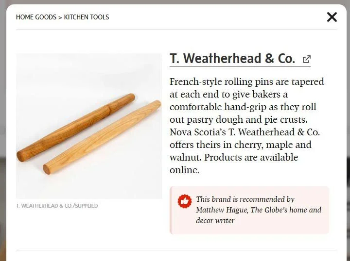 Every once in a while, something happens in the workshop that makes us stop the sawdust from flying, lean on a workbench for a moment, and allow ourselves a quiet, grateful smile. Earlier this year, we had one of those moments—when our handcrafted French-style rolling pins were included in The Globe and Mail’s “Big Guide to Canadian Shopping.”